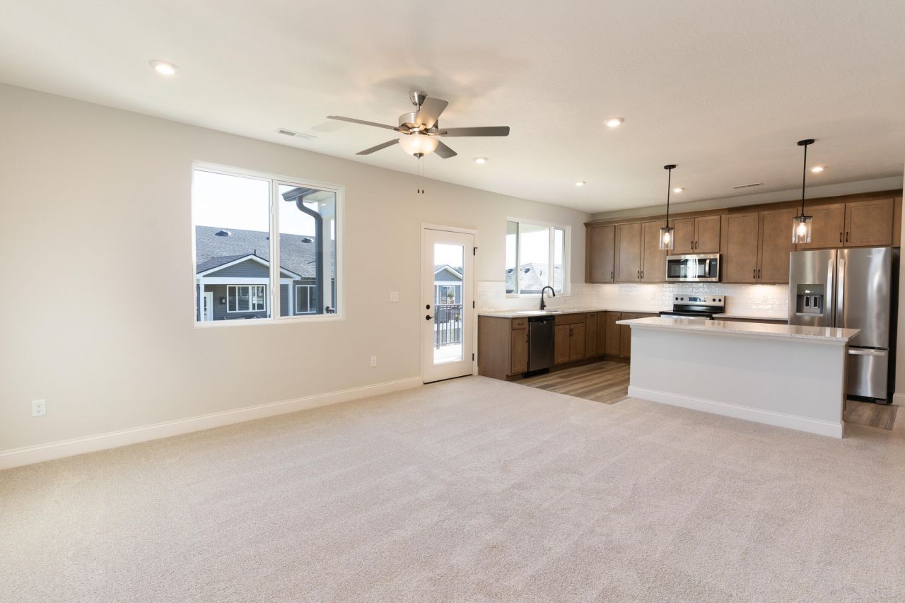 This spacious second-floor condo combines comfort and style with an airy open layout and soaring 9 ceilings. The heart of the home is a chef-inspired kitchen featuring a generous island with seating, stainless steel appliances, ample cabinetry, and a walk-in pantry?all flowing seamlessly into the dining and family rooms, perfect for entertaining. Tucked away for privacy, the primary suite is a peaceful retreat with a walk-in closet and a spa-like bath featuring a double vanity and walk-in shower. Step onto your covered deck to enjoy quiet mornings or unwind in the evening air?your own private outdoor haven.
